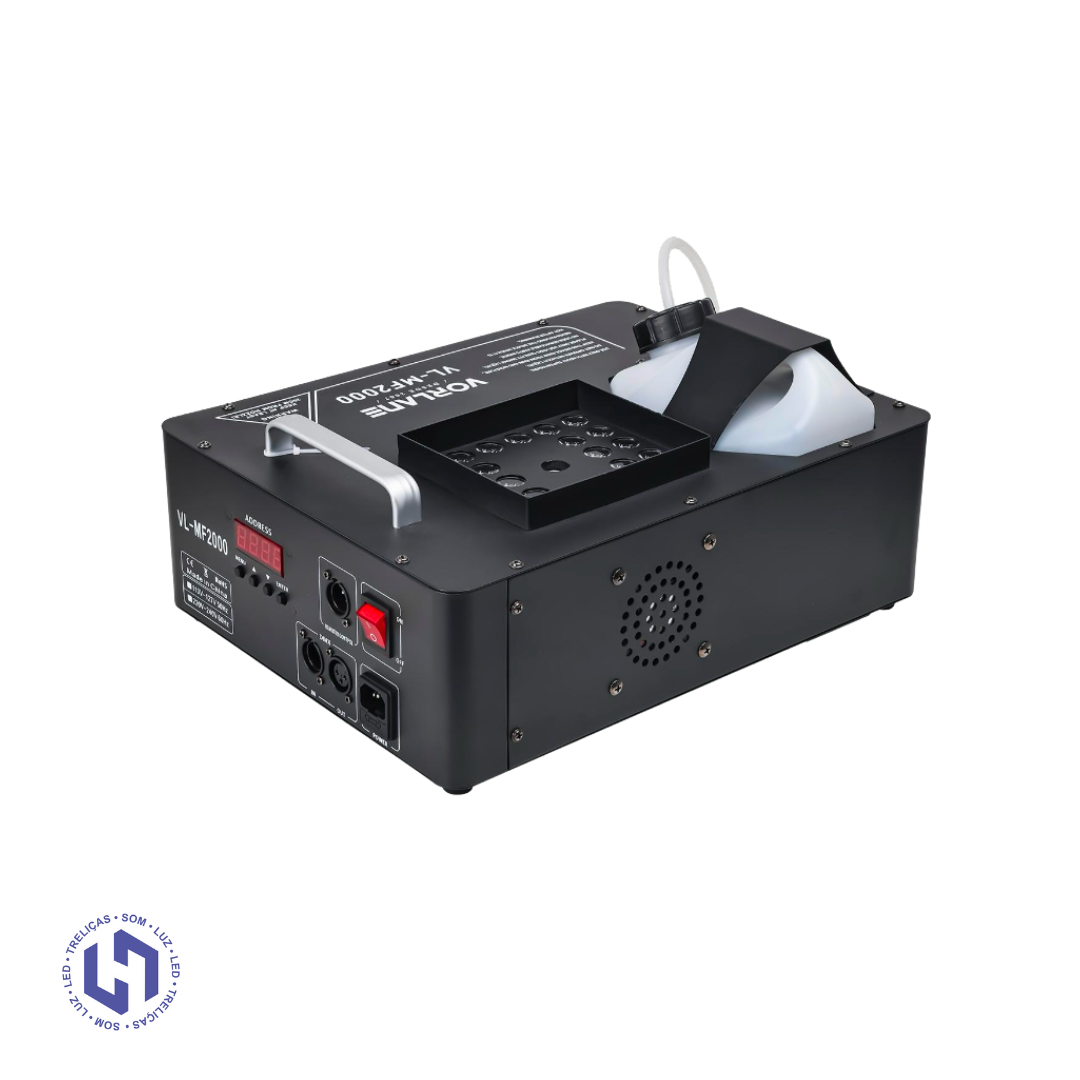 A Máquina de Fumaça 2000W com 24 LEDs RGB 3 em 1 foi desenvolvida para eventos, shows, palcos e produções profissionais que exigem alto volume de fumaça aliado a efeitos de luz impactantes.