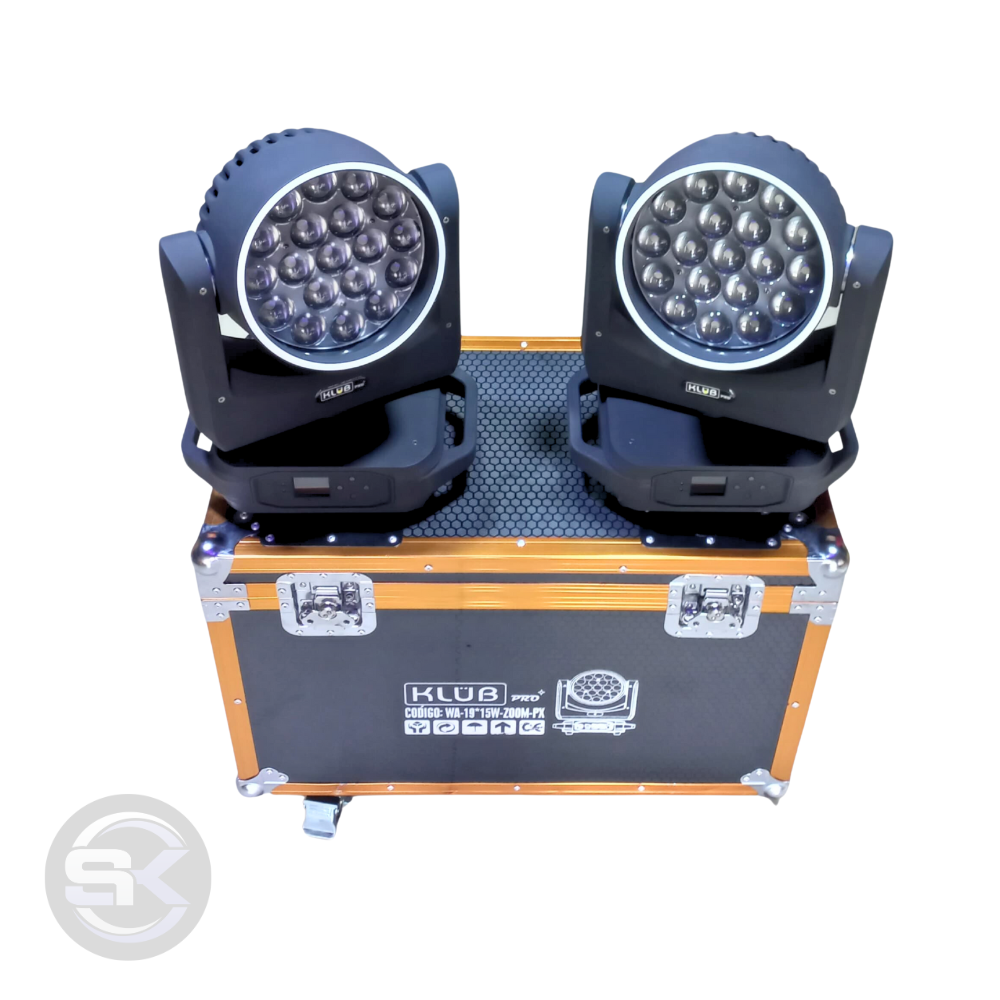 Moving Head Wash 19×15 com Borda e Zoom – Case duplo